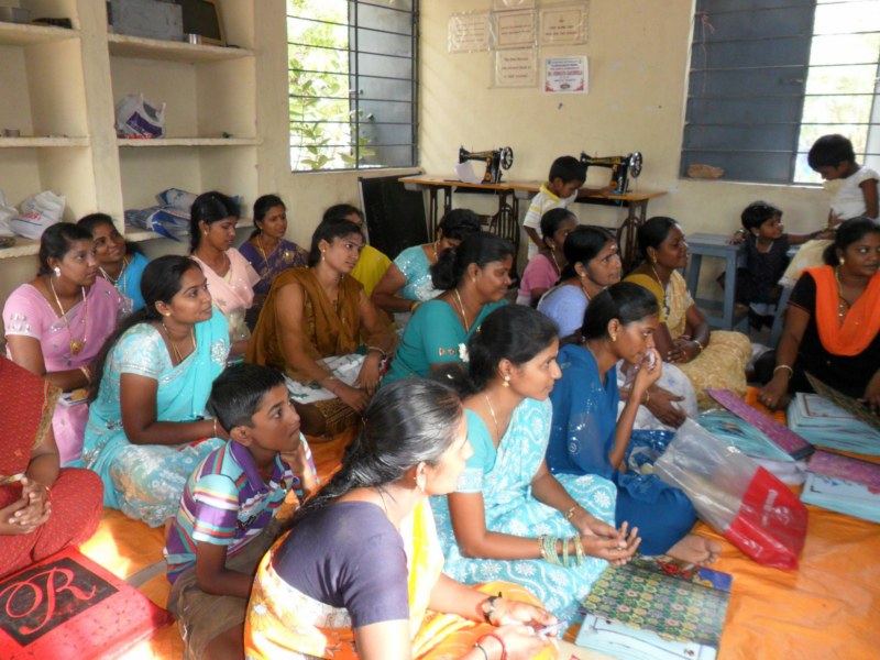 A section of the students in Vocational Training Center at Veppampattu. It functions on Women Self Help group Govt. Building. Smt. Uma conducts this tailoring training. 30 students are taking training a time for 3 months and certificate given on successful completion. This has been functioning since 2007.